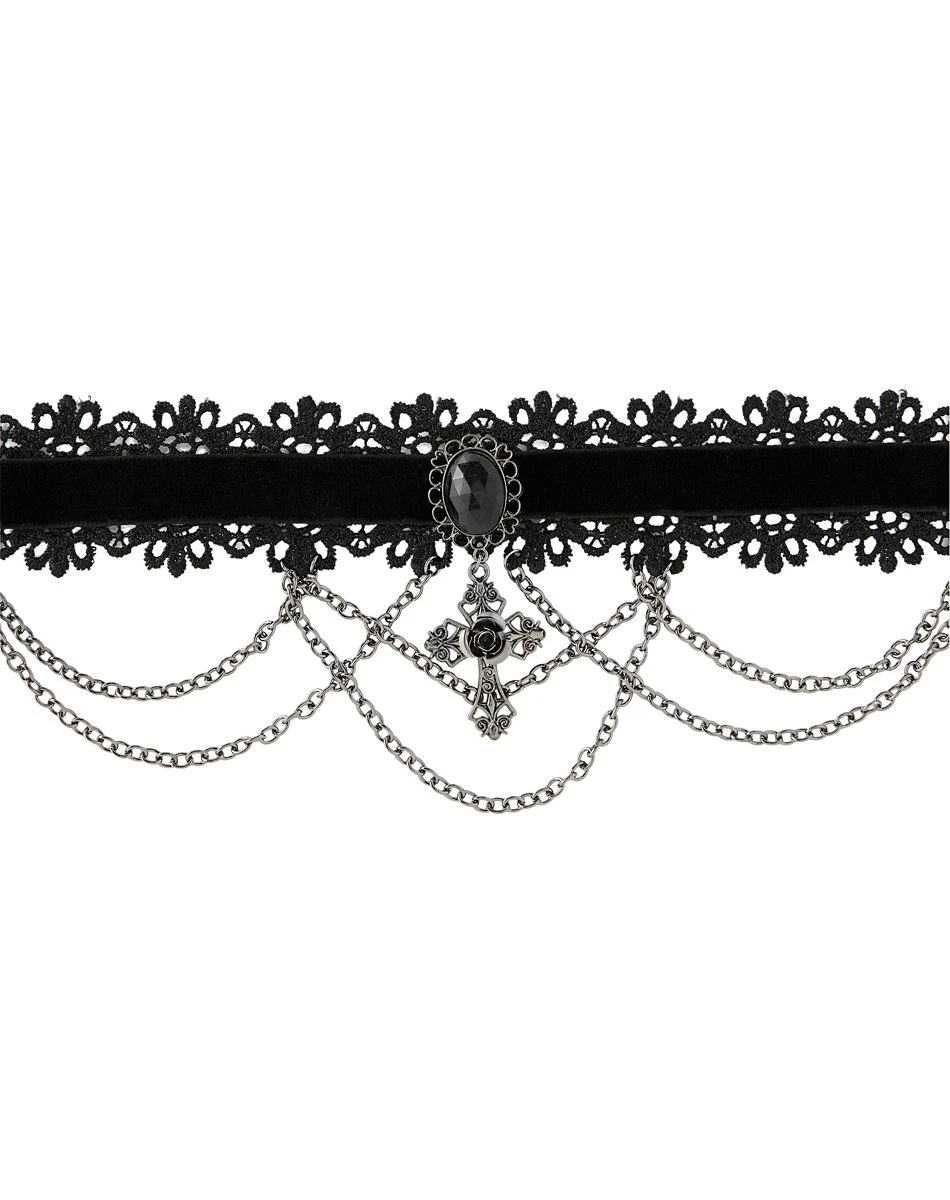 Put on this awesome cross lace choker necklace and add a vampire vibe to your Halloween costume. This necklace features chains that dangle from the neck and a beautiful black cross pendant that’ll make you look like a true bloodsucker!